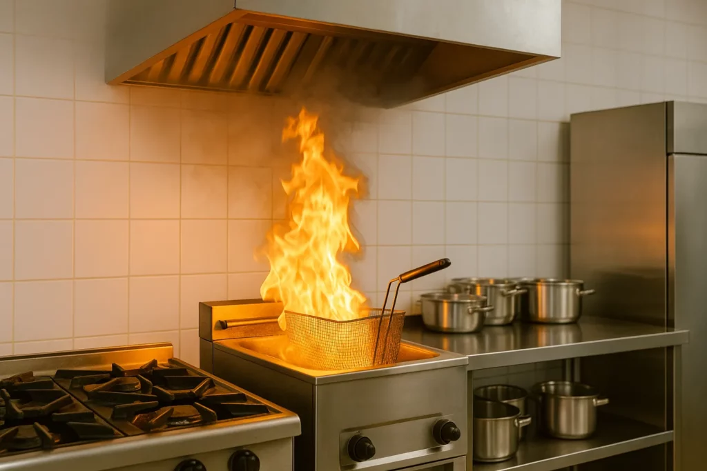 Een vetbrand ontstaat als olie of vet oververhit raakt, vaak in een pan, frituur of bakwand. Binnen enkele seconden kan de hele keuken in brand staan. Water of poederblussers vergroten het risico op letsel en uitbreiding van de brand.